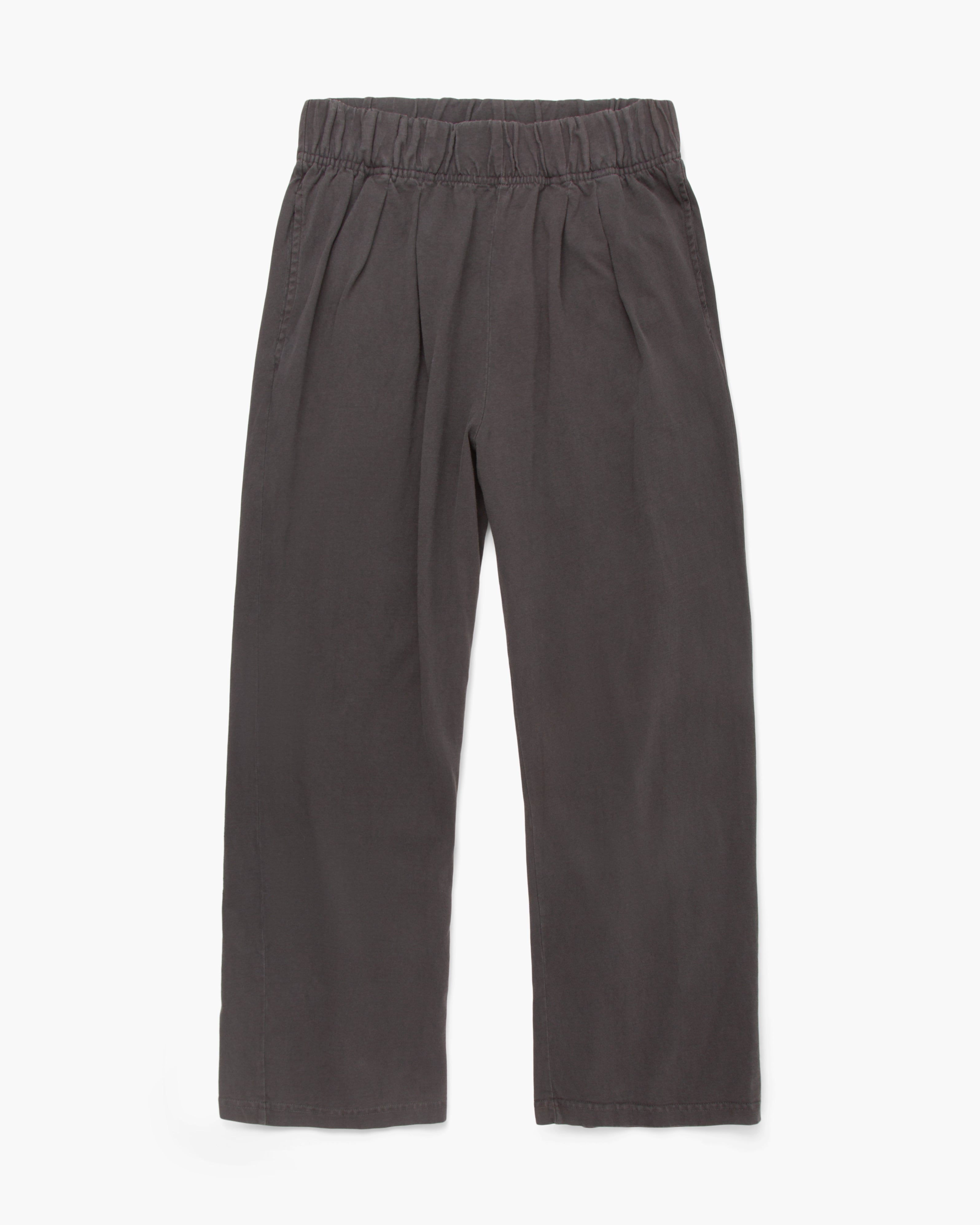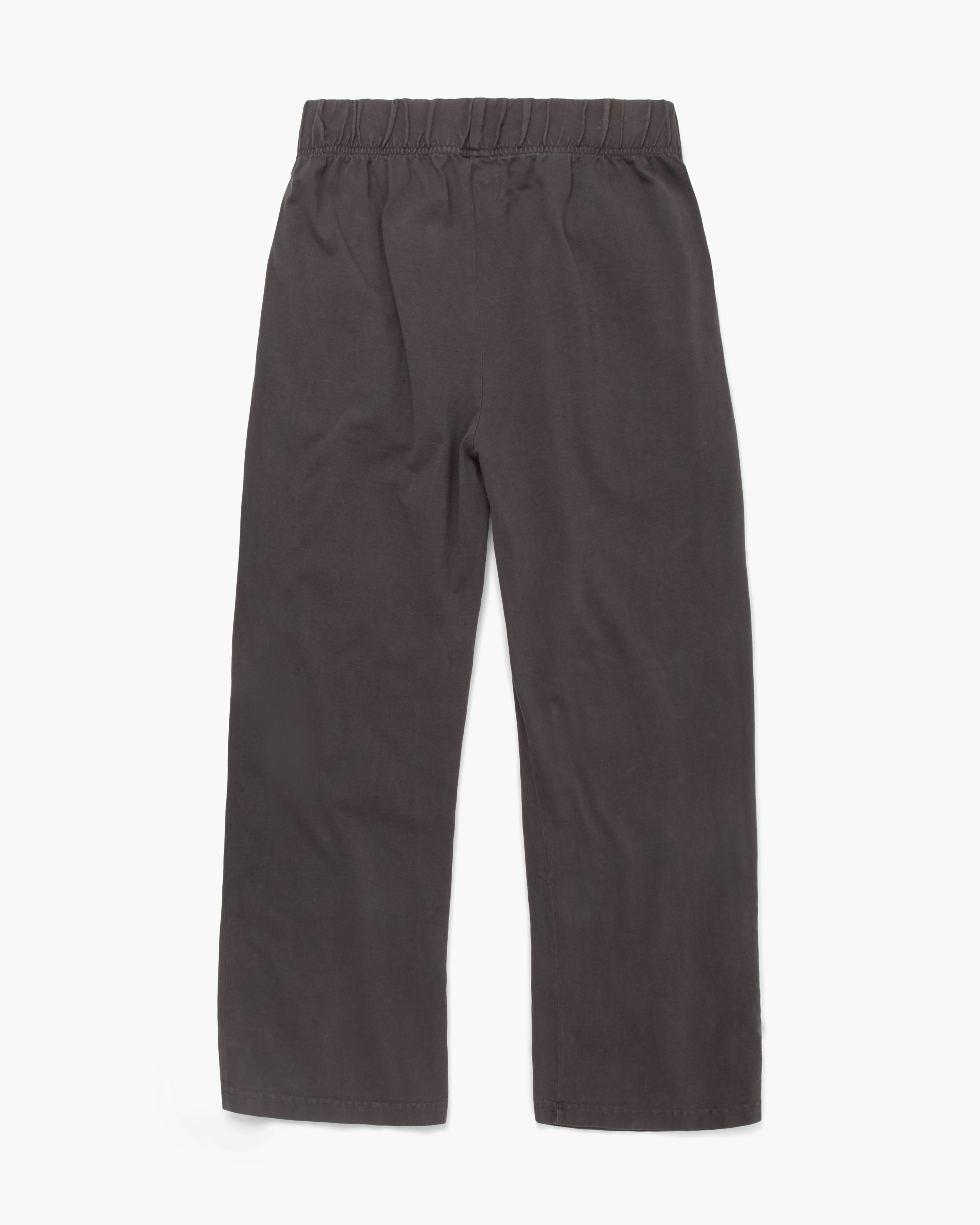 Penny Pleat Front Pant in vintage black by Les Tien. Luxe jersey blend of Supima cotton, modal, and spandex with a relaxed fit and mid-rise waist. Elastic waistband and ankle-length cut. Made in USA.