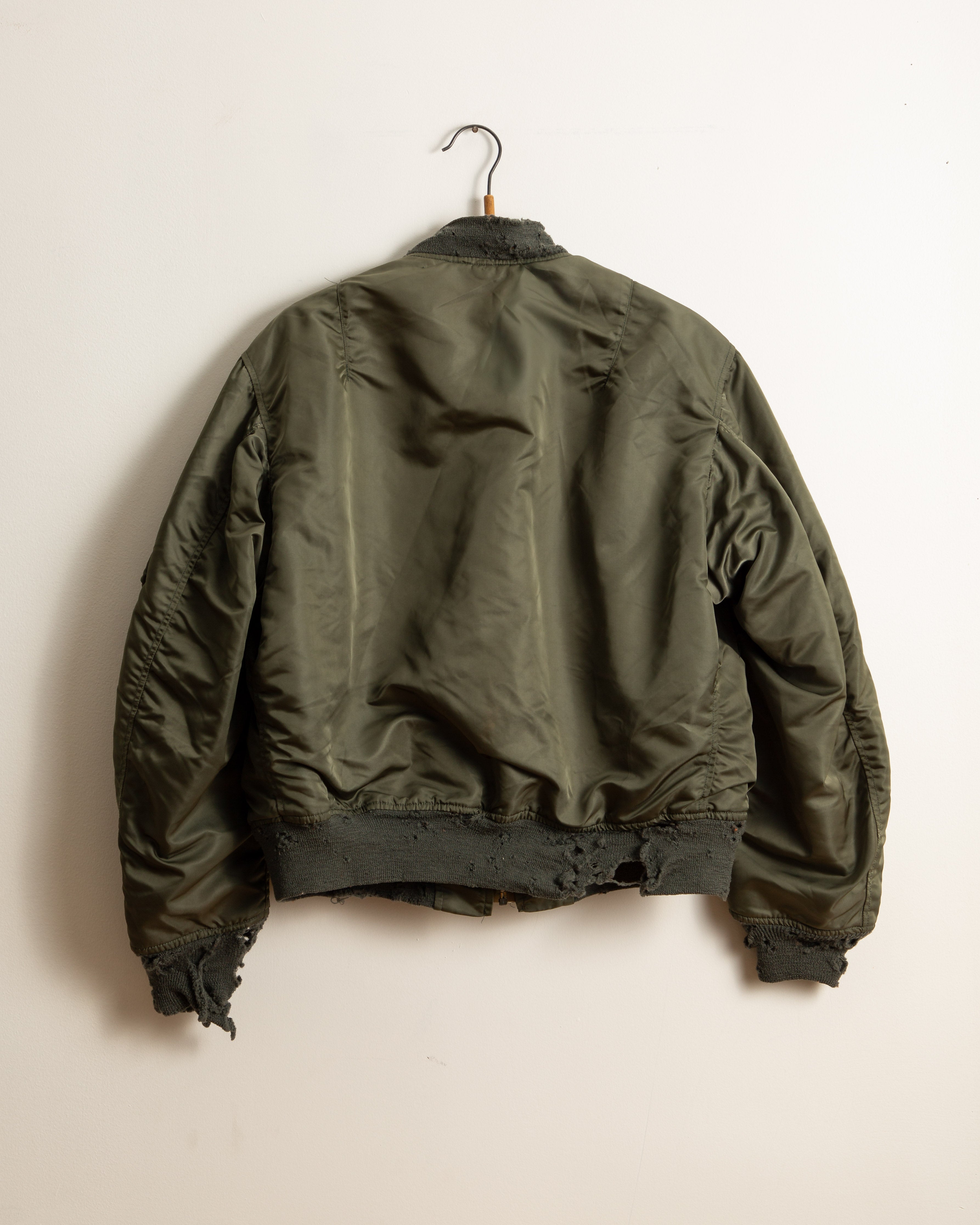 Vintage Alpha Industries 70's L-2B Flyer's Jacket. Sourced from our archives with distressing at cuffs, hem, and collar. Features a solid nylon outer shell, zip closure. Made with wool & acetate insulation and fits regular.
