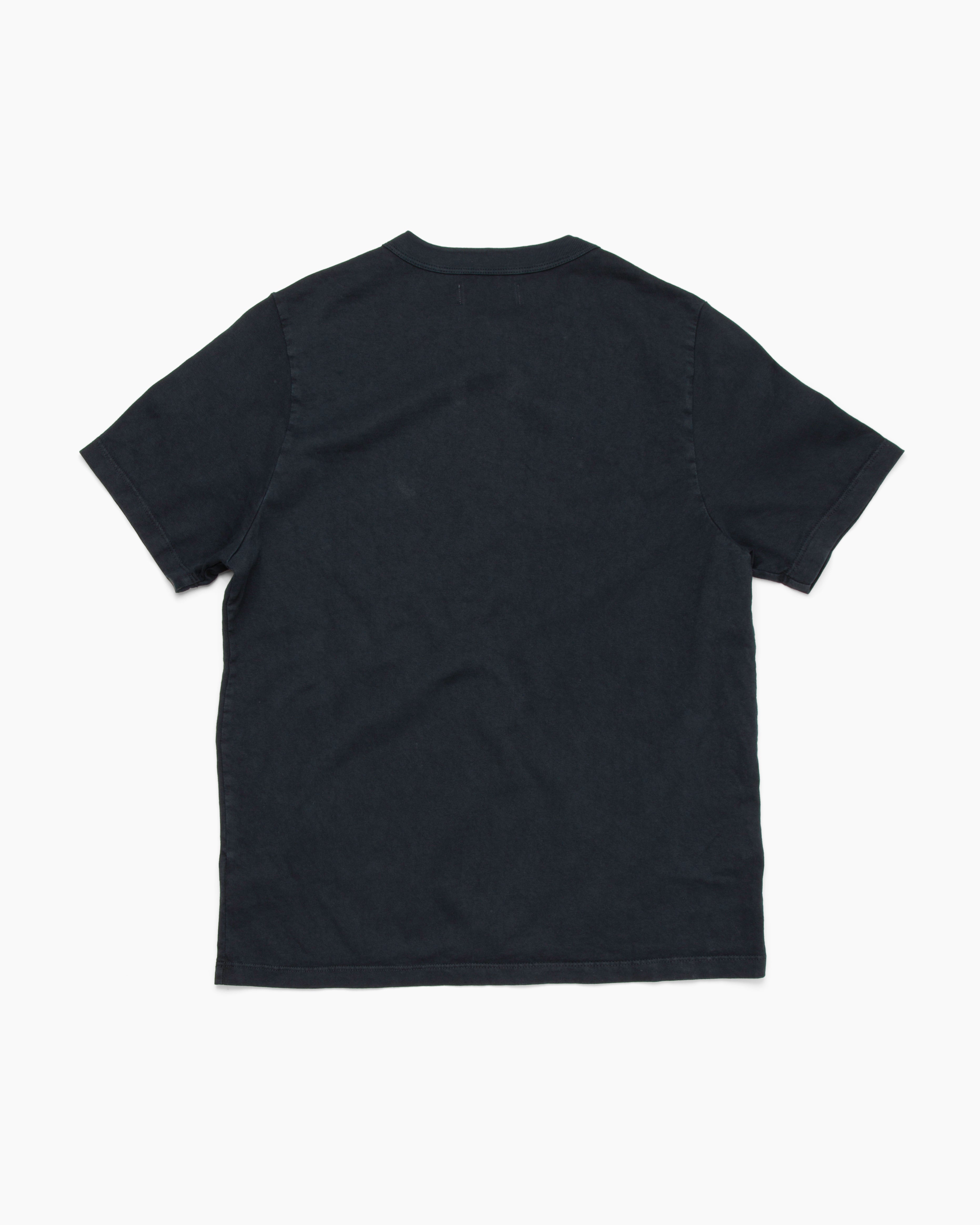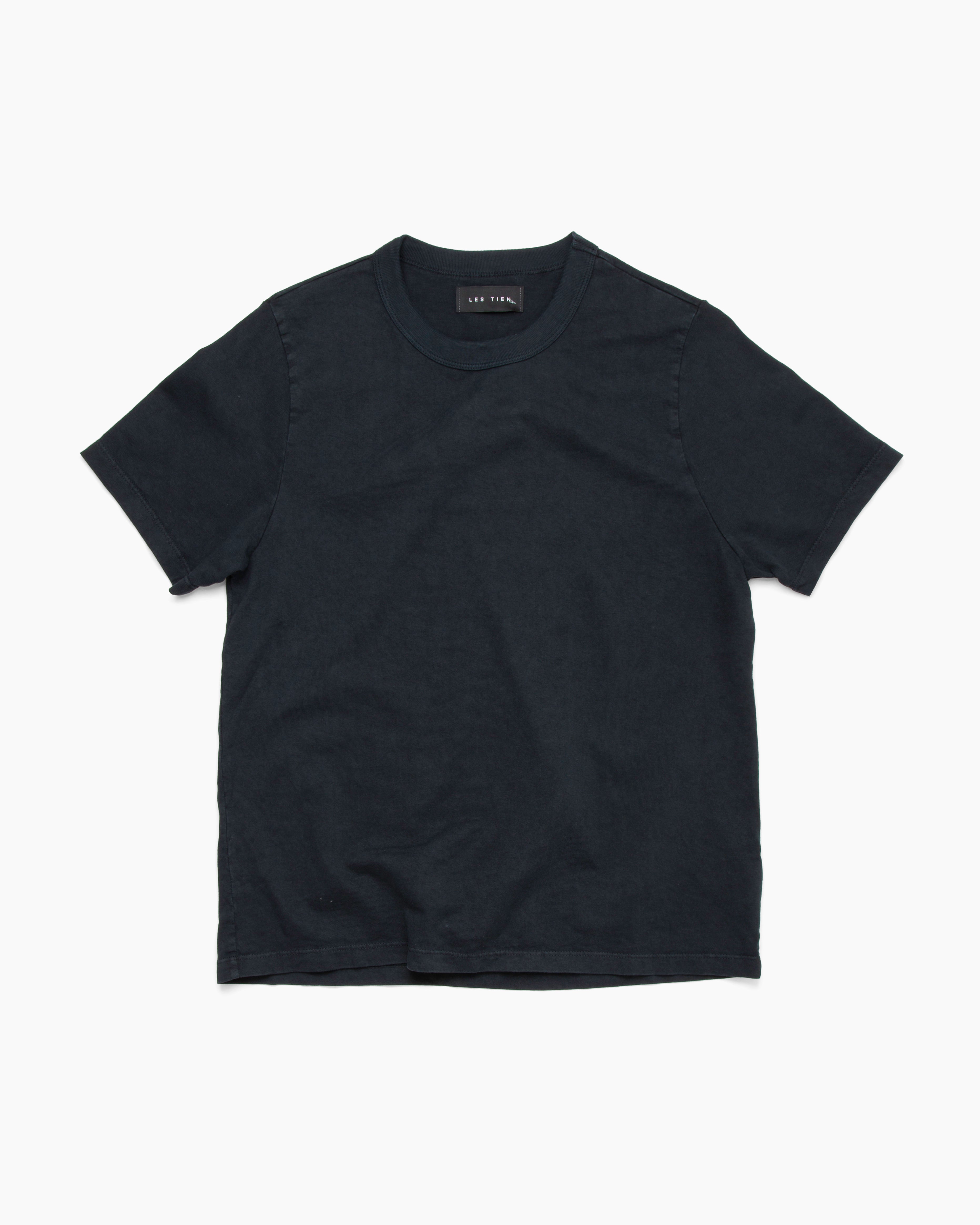 Les Tien's Heavyweight Tee in faded black features 100% cotton fabric, garment-dyed for a worn-in look. Made in the USA, it offers a boxy fit with a classic crew neck collar.