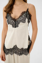 Lalou Top in birch/white by Gestuz. Lace camisole with sheer trim and adjustable straps. Relaxed, feminine fit.