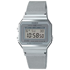 Casio's A700WM-7AVT delivers classic digital timekeeping in a sleek silver design. This ultra-thin timepiece features water resistance for everyday durability, a precision 1/100-second stopwatch, daily alarm function, and a polished stainless steel band. LED backlight ensures visibility in low-light conditions, making it both practical and refined.