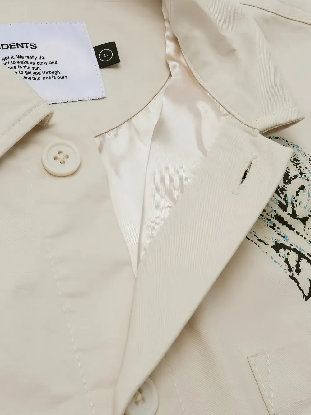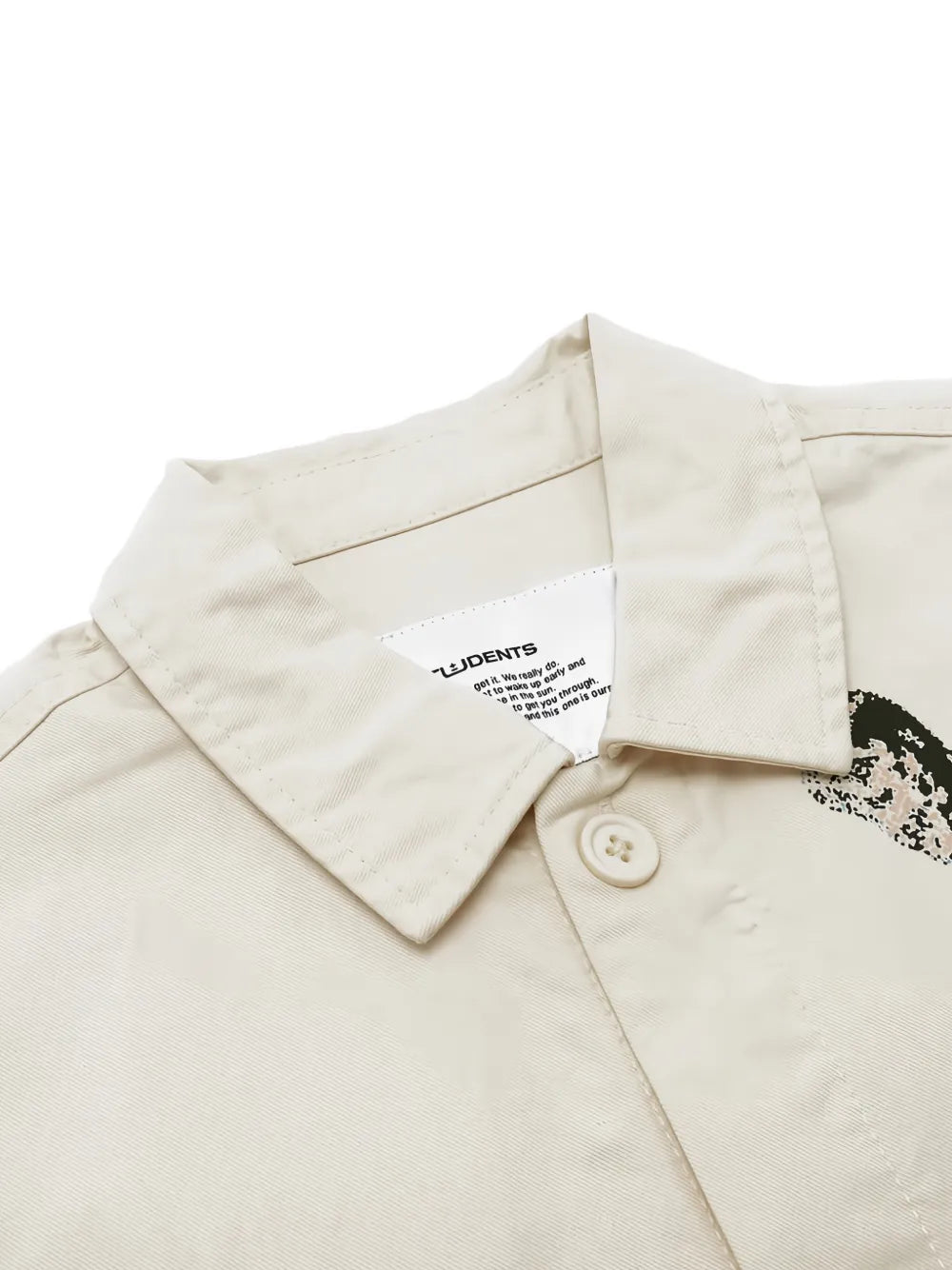 Vintage-inspired chore jacket by Students Golf in crisp off-white cotton twill. Features a nostalgic golf graphic rendered in water-based screen print. Cut in a cropped silhouette with two front slit pockets and sewn button closures. Durable 100% cotton twill construction makes it perfect for layering.