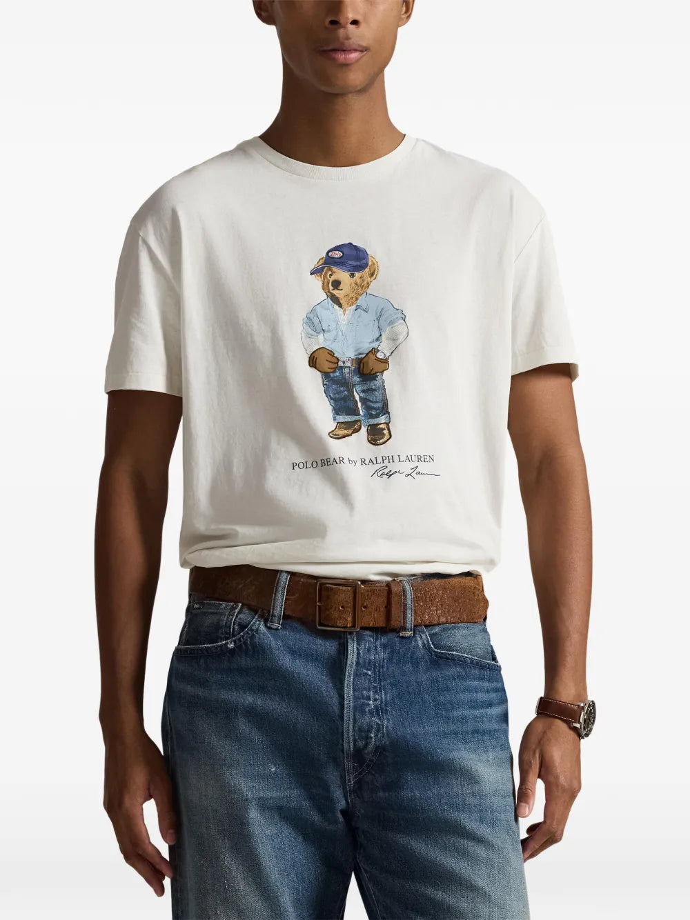 Polo Bear T-Shirt in nevis white. Crafted from soft cotton jersey with classic fit and short sleeves. Features iconic Polo Bear graphic at center front. Machine washable.