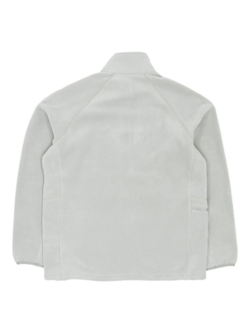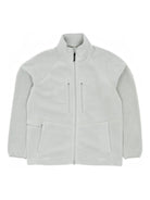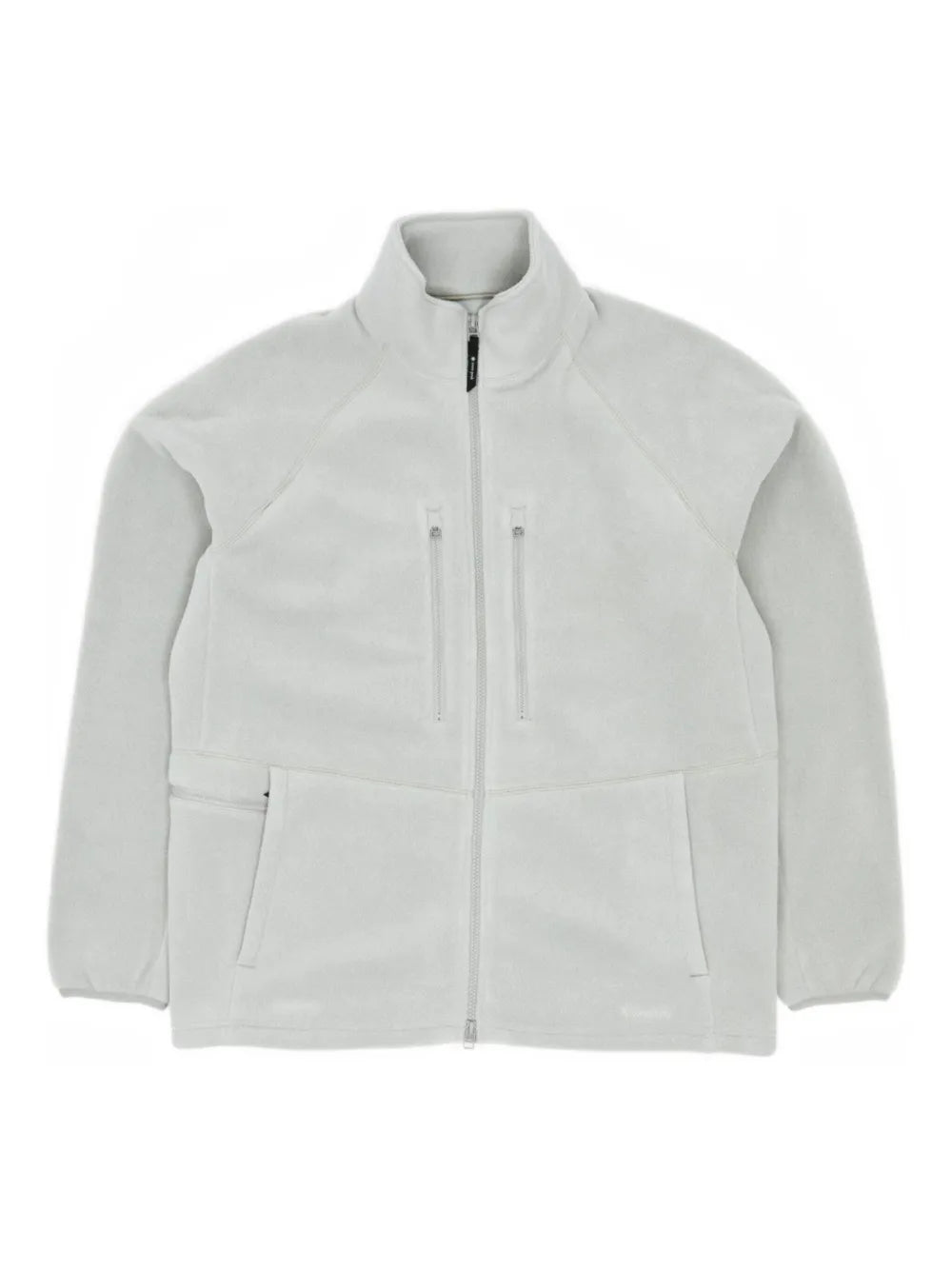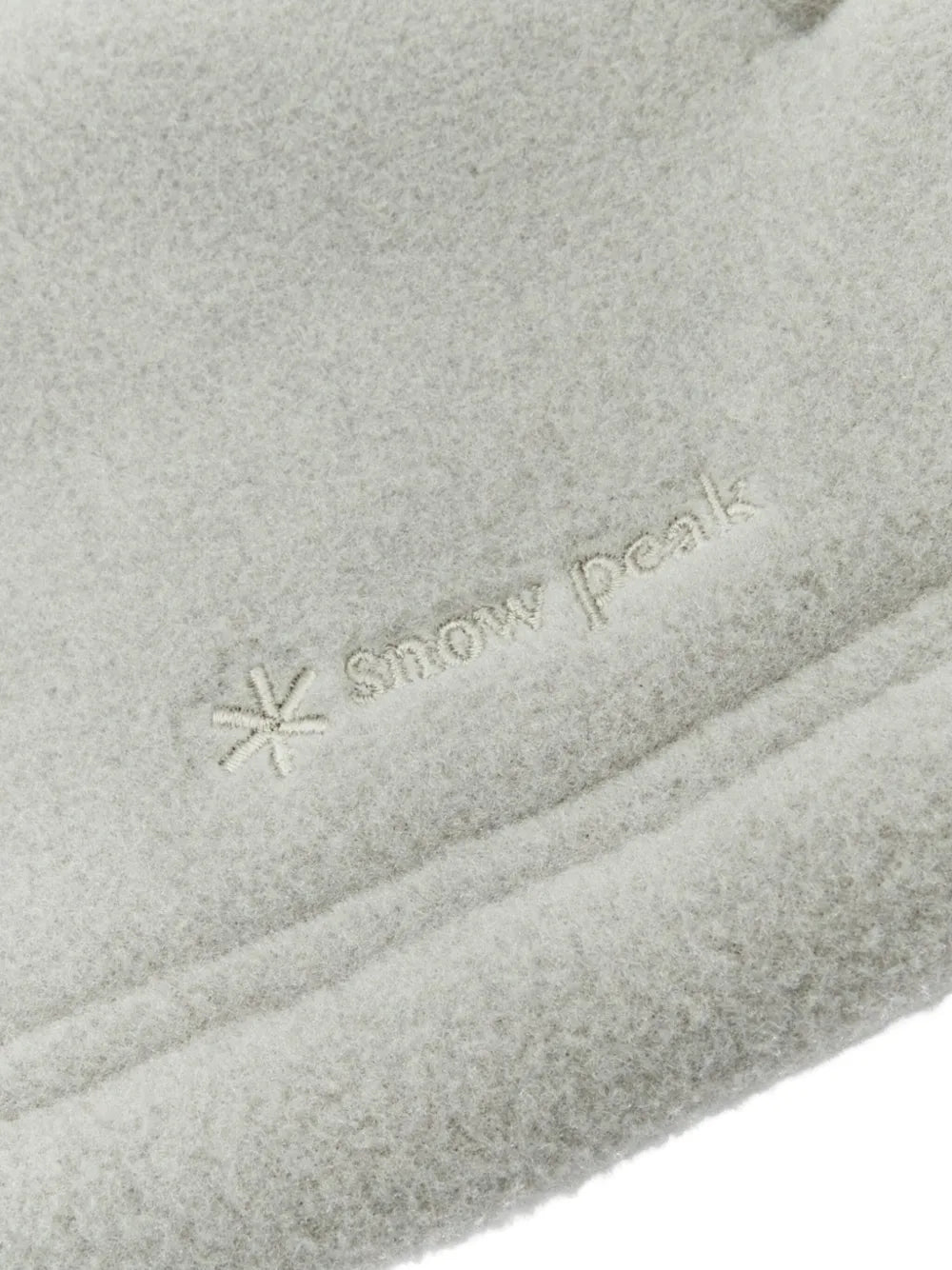 Grey water-repellent fleece jacket by Snow Peak with zip closure, high neck, and multiple pockets. 100% polyester.