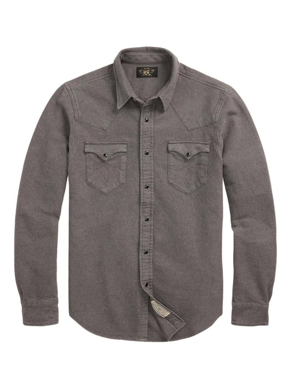 The Slim Fit Chamois Western Shirt by RRL is crafted from medium-weight cotton chamois with a brushed finish. This slim silhouette features a metal collar button, tonal pearlescent snaps, and a washed finish for subtle shading and a vintage-inspired look.