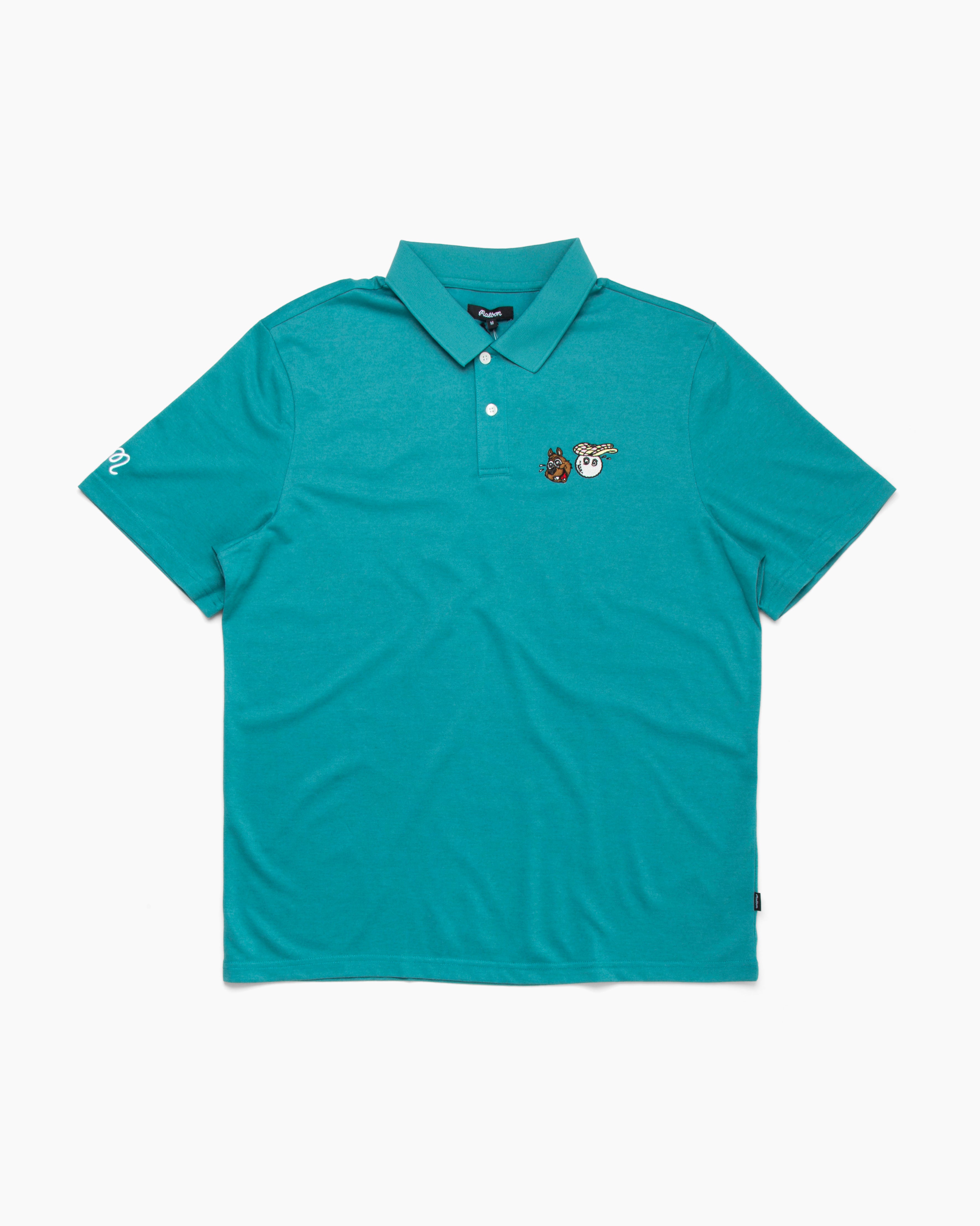 Made from a soft poly-cotton blend, this classic polo features exclusive embroidery from the Two Man Scramble collection. It includes embroidered Buckets and Calvin the Squirrel on the left chest, an M script logo on the right sleeve, and a woven Malbon flag label on the left hip.