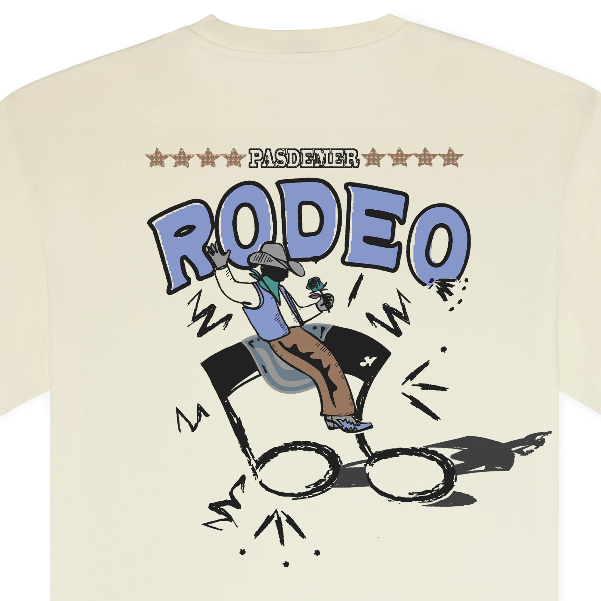 Rodeo T-Shirt in cream by Pas de Mer. Features pigment prints on the front and back, showcasing Pas de Mer’s Rodeo-inspired artwork with a playful Western twist.