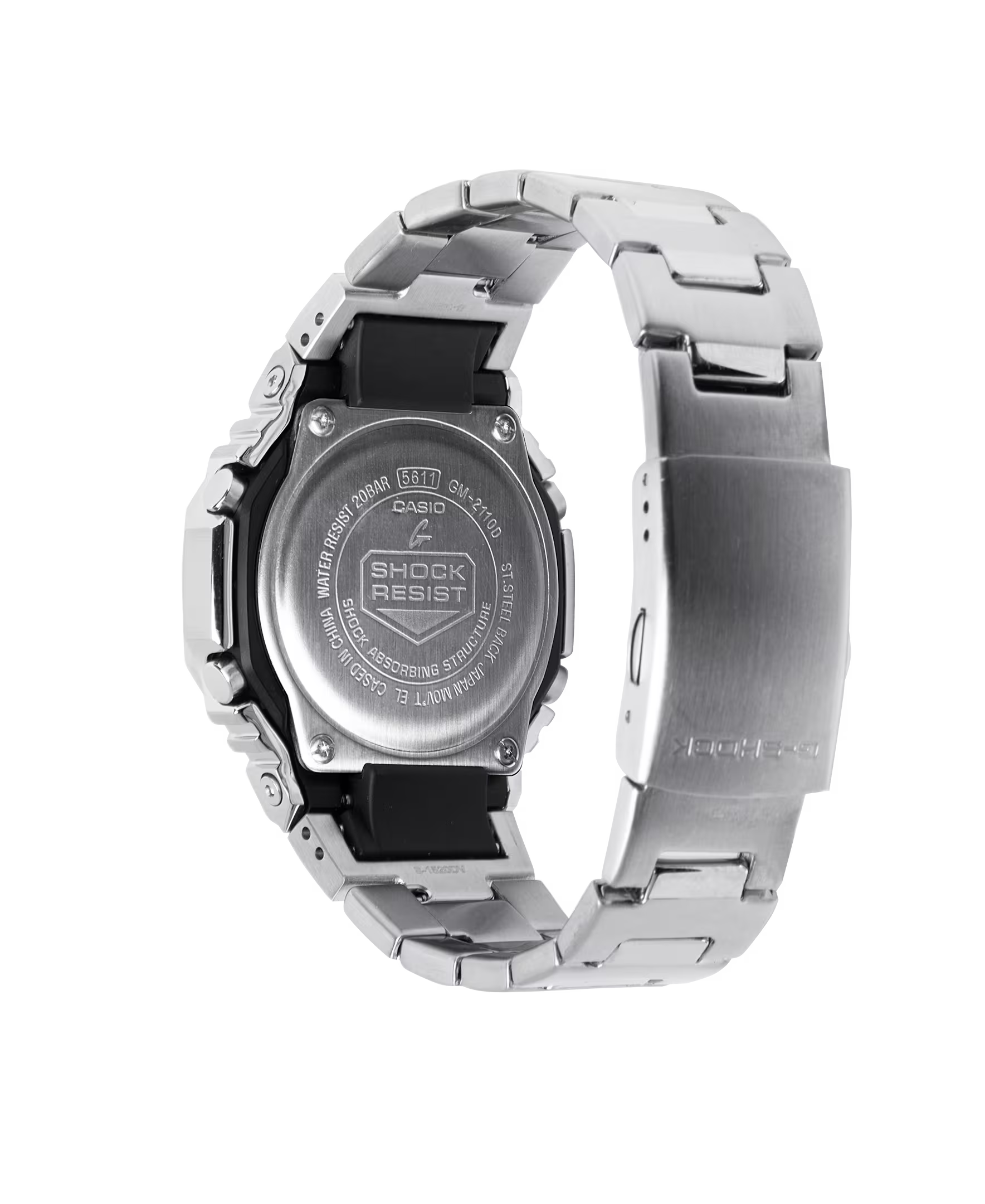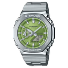 Sophisticated G-SHOCK steel watch with a green dial and stainless-steel bezel and band. The slim GM2110D-3A combines analog-digital functionality with legendary shock resistance and 200-meter water resistance. Built for both casual and business wear.