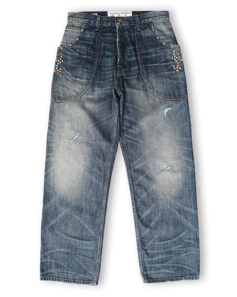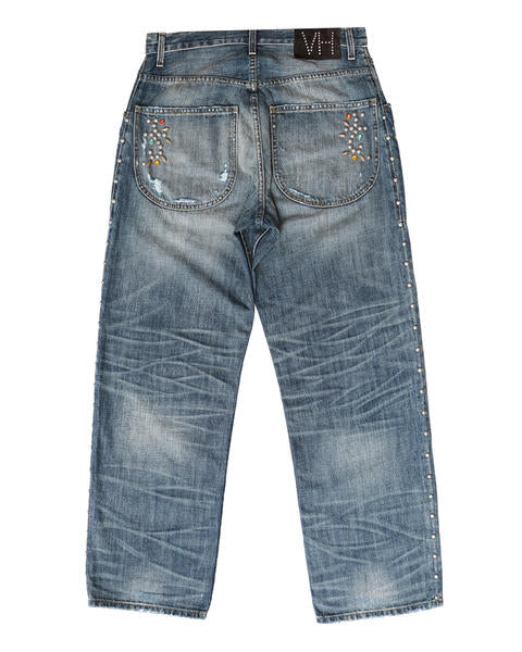The Extra Baggy Studded Jean in washed indigo by Vintage Heavy offers a relaxed fit designed for daily wear. These jeans capture Vintage Heavy’s vintage Americana heritage with easy shapes, washed finishes, and a lived-in appearance that improves with age.