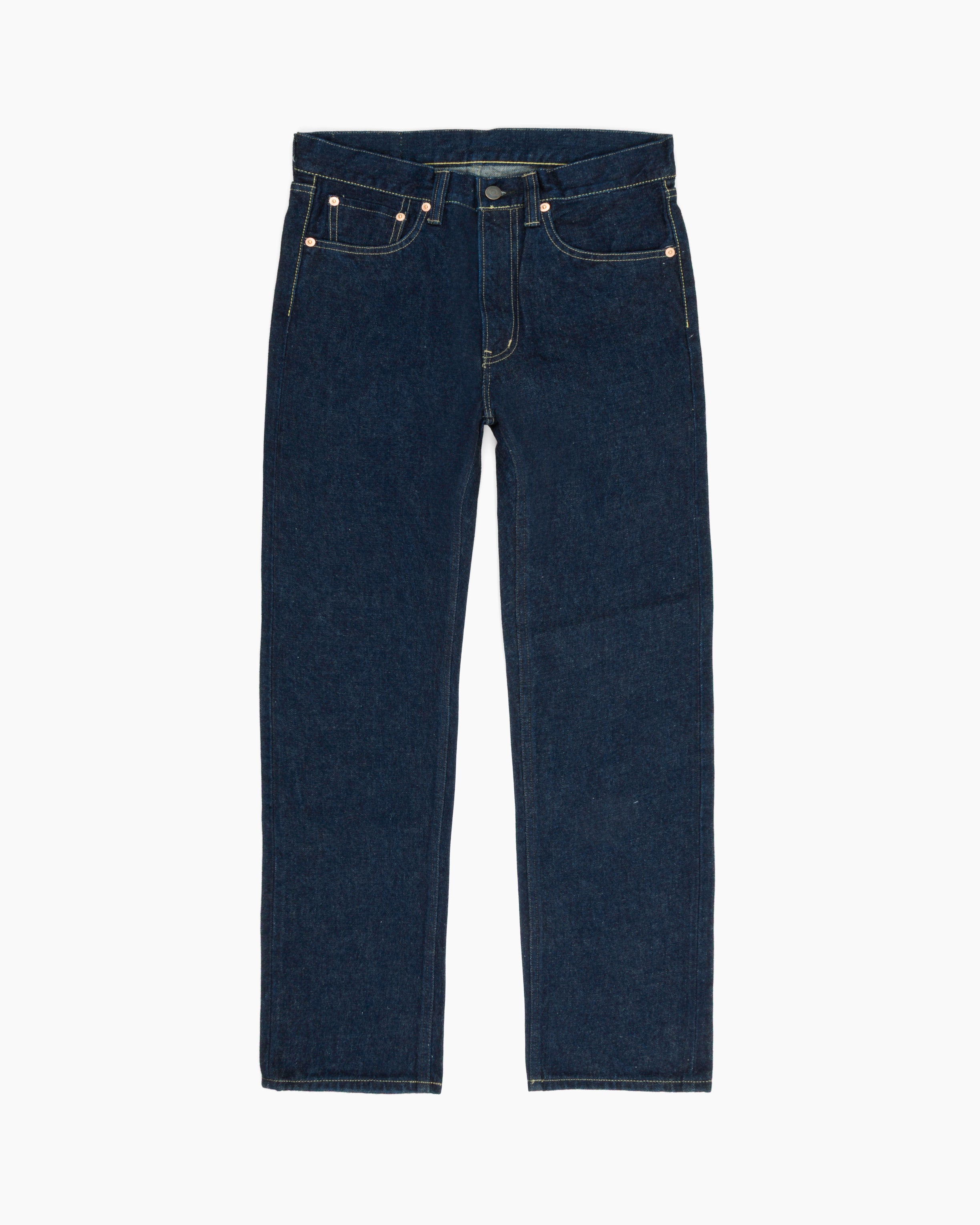 PP01 Selvage Denim by Blue Blue Japan features original selvedge denim with warp threads rope-dyed in dark indigo and gray beige-dyed weft threads. Woven on vintage power looms, this denim develops a distinctive character over time. The jeans offer a clean, slightly slim straight fit and a minimalist finish for lasting wear.