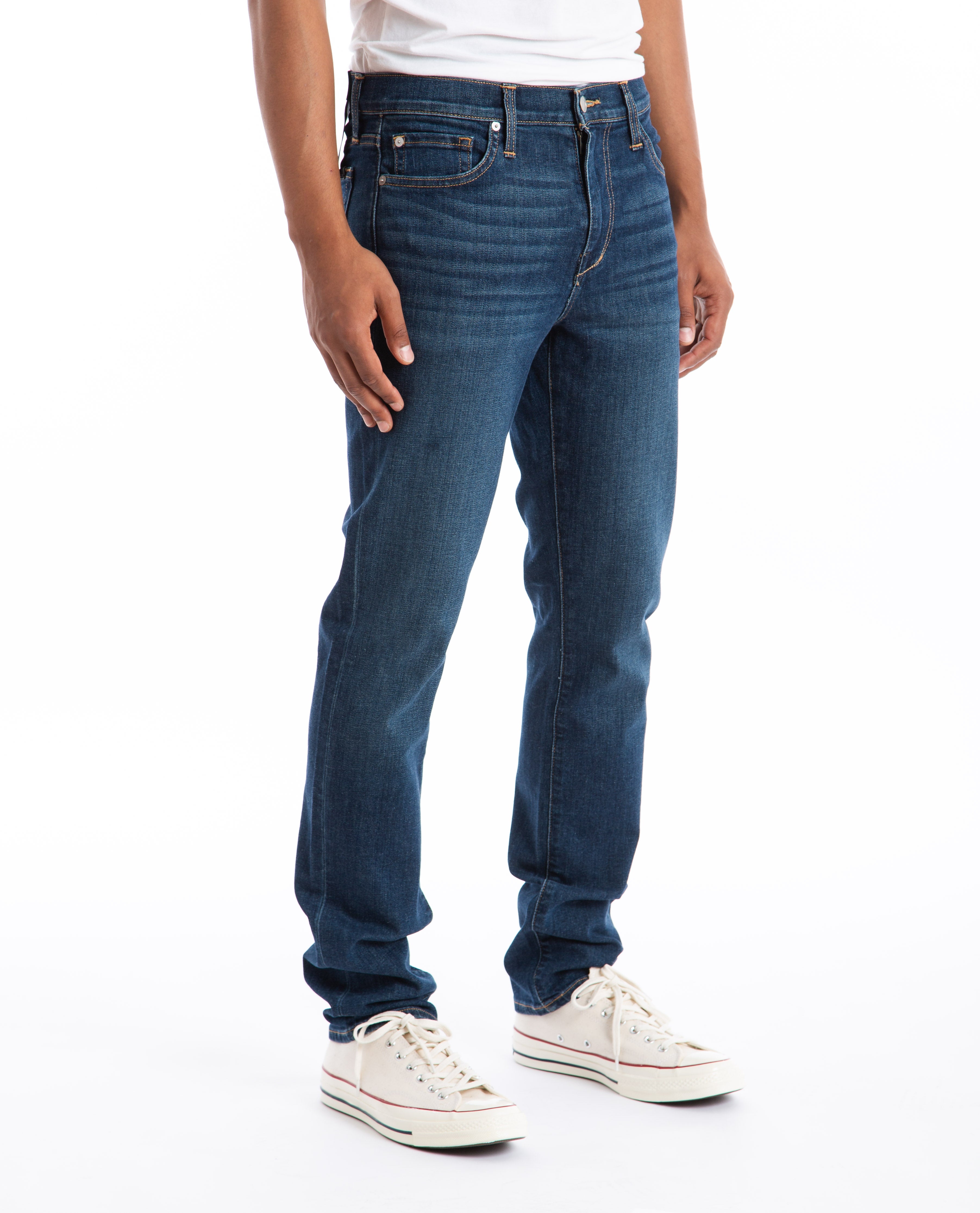 The Brixton Jean in Mahrez dark blue wash by Joe's Jeans. The Brixton Jean Mahrez is expertly crafted with a medium indigo stone wash, subtle whiskering, and faded details. Elevate your style with this versatile and timeless staple.