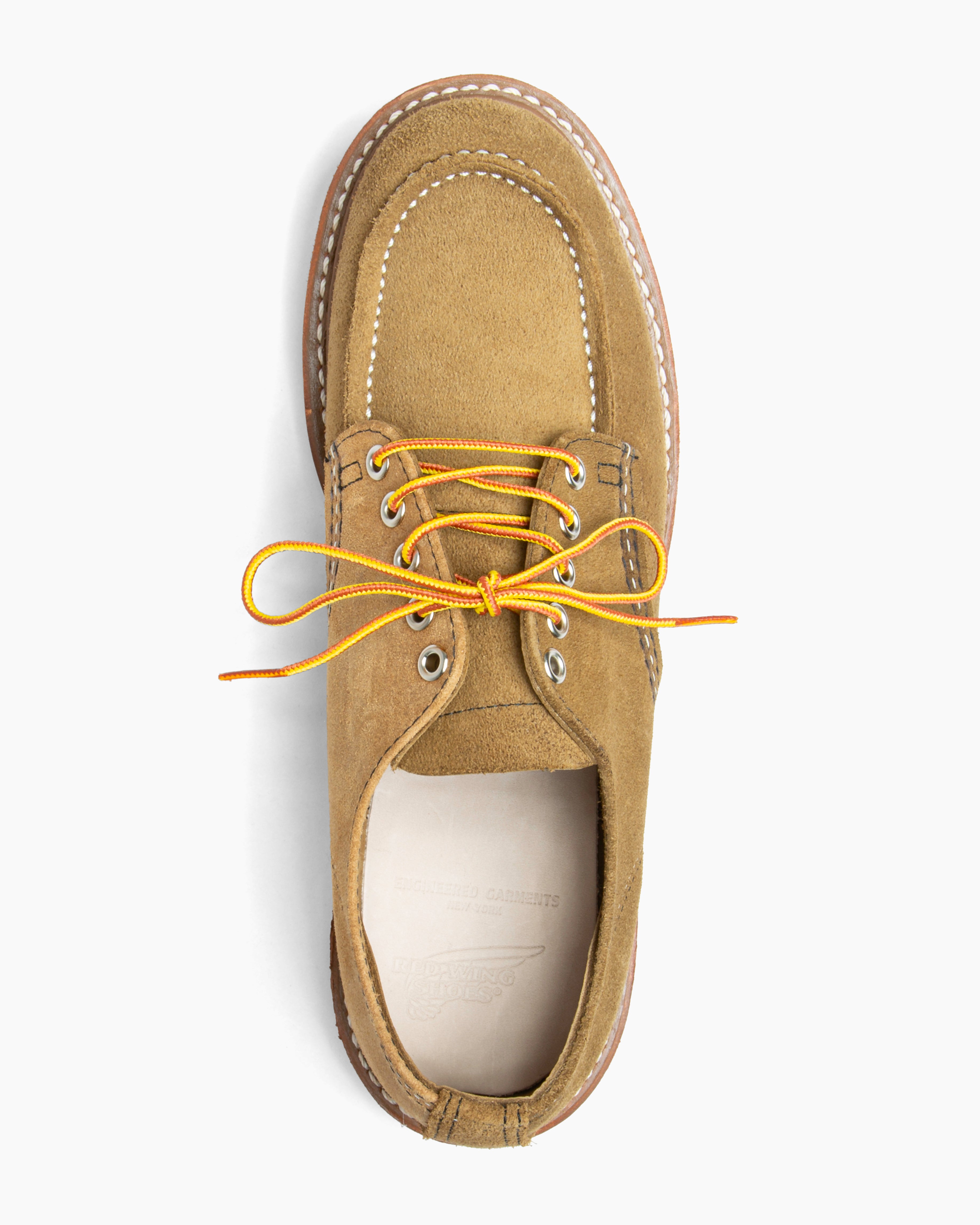 The camel-colored Engineered Garments Shop Moc Oxford from Dr. Martens is based on style no. 895, first seen in the 1954 Red Wing Shoe catalog. This version of the classic oxford draws inspiration from the iconic 8-in Classic Moc and features storm welt construction, Puritan triple stitching, Traction Tred outsole, and a leather insole with additional heel padding for comfort. Available in various leather colors and textures, this limited edition collection comes with a premium shoe bag and an archive-inspired Irish Setter branded box.