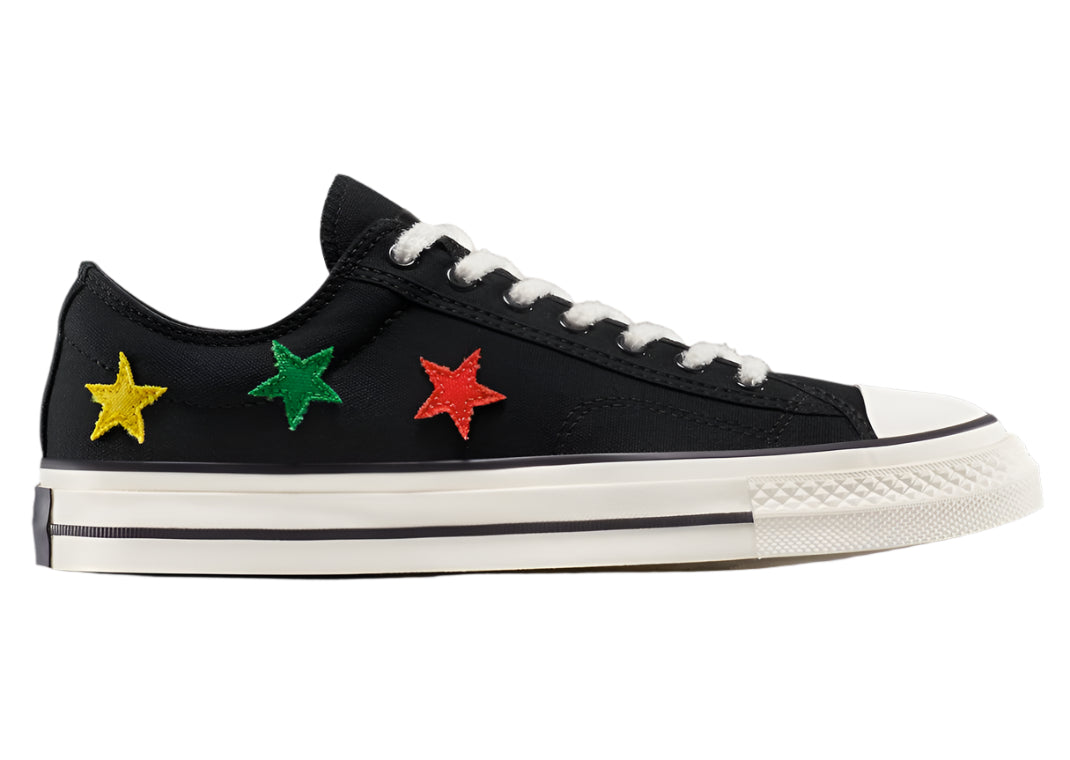 Introducing the Converse X Daily Paper Star Player 76 Ox. This collaborative collection draws inspiration from boxing, honoring "Everyday Champions". With Daily Paper's signature red, yellow, and green accents, star motifs, and custom insoles, this sneaker is a unique and stylish addition to any wardrobe.