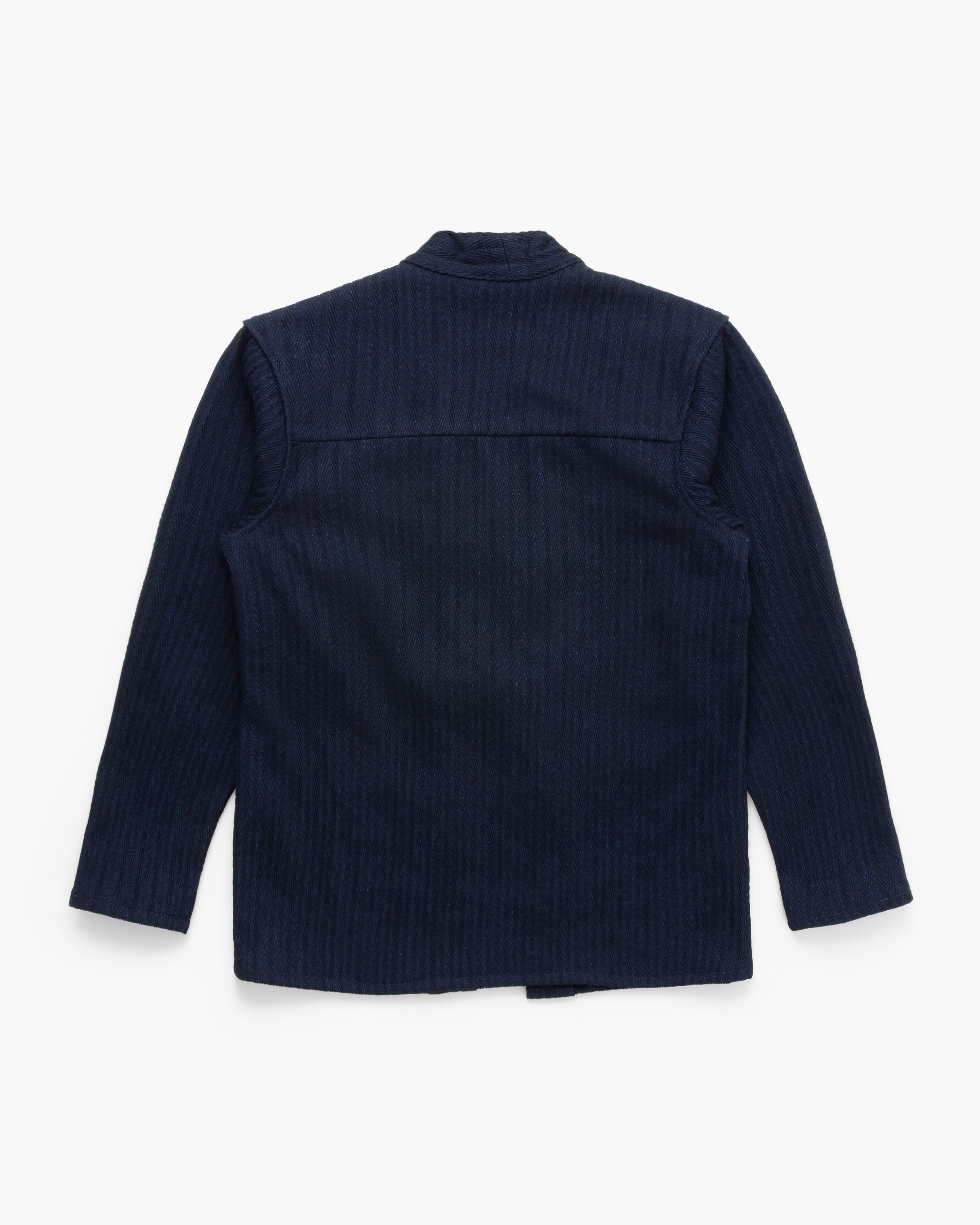 Kimono Jacket in Indigo Sugiaya by Naked & Famous showcases 12oz Japanese herringbone twill with a fabric-rinsed finish. The treatment softens the hand while enhancing the weave's three-dimensional texture, which deepens with wear for a uniquely lived-in look.