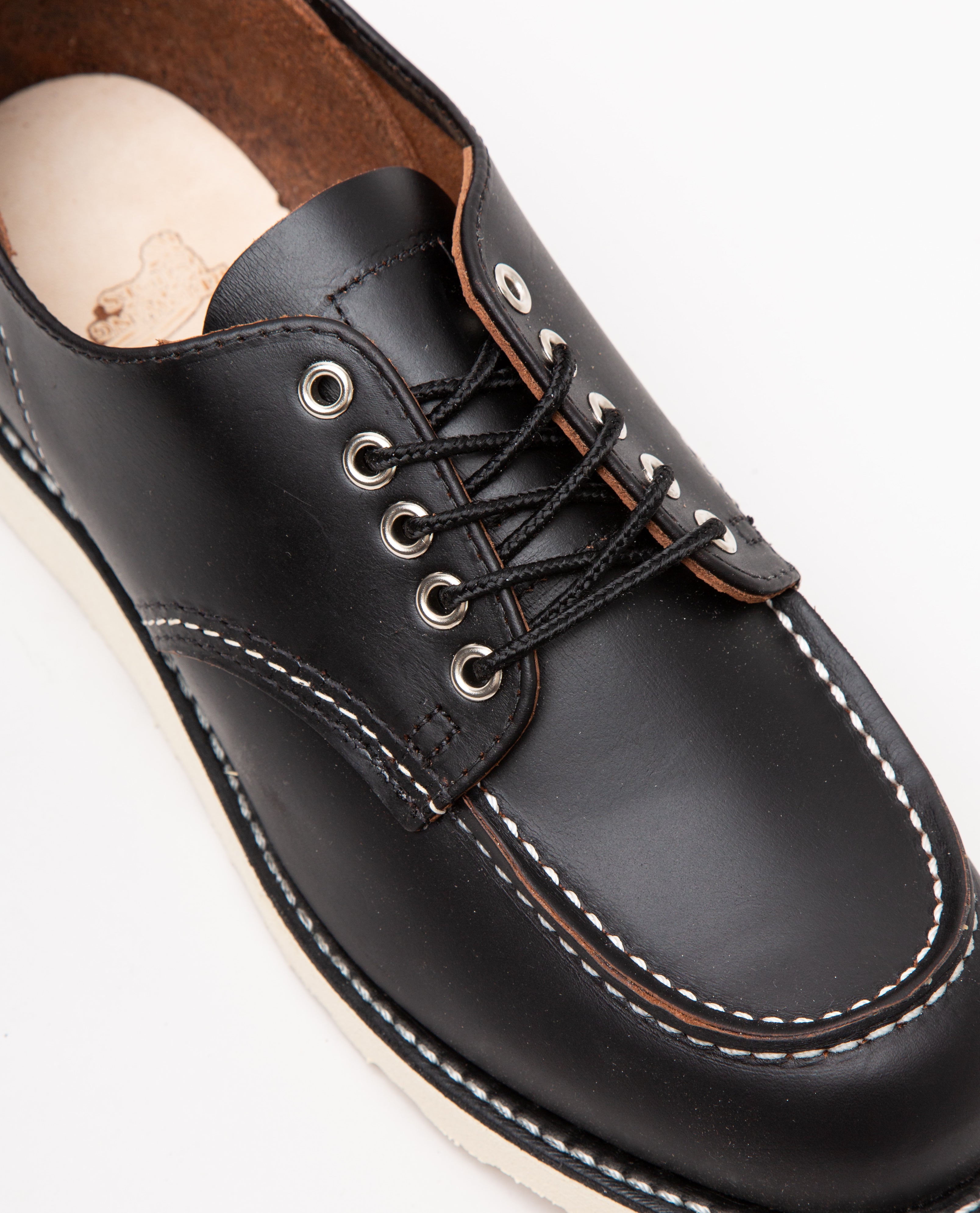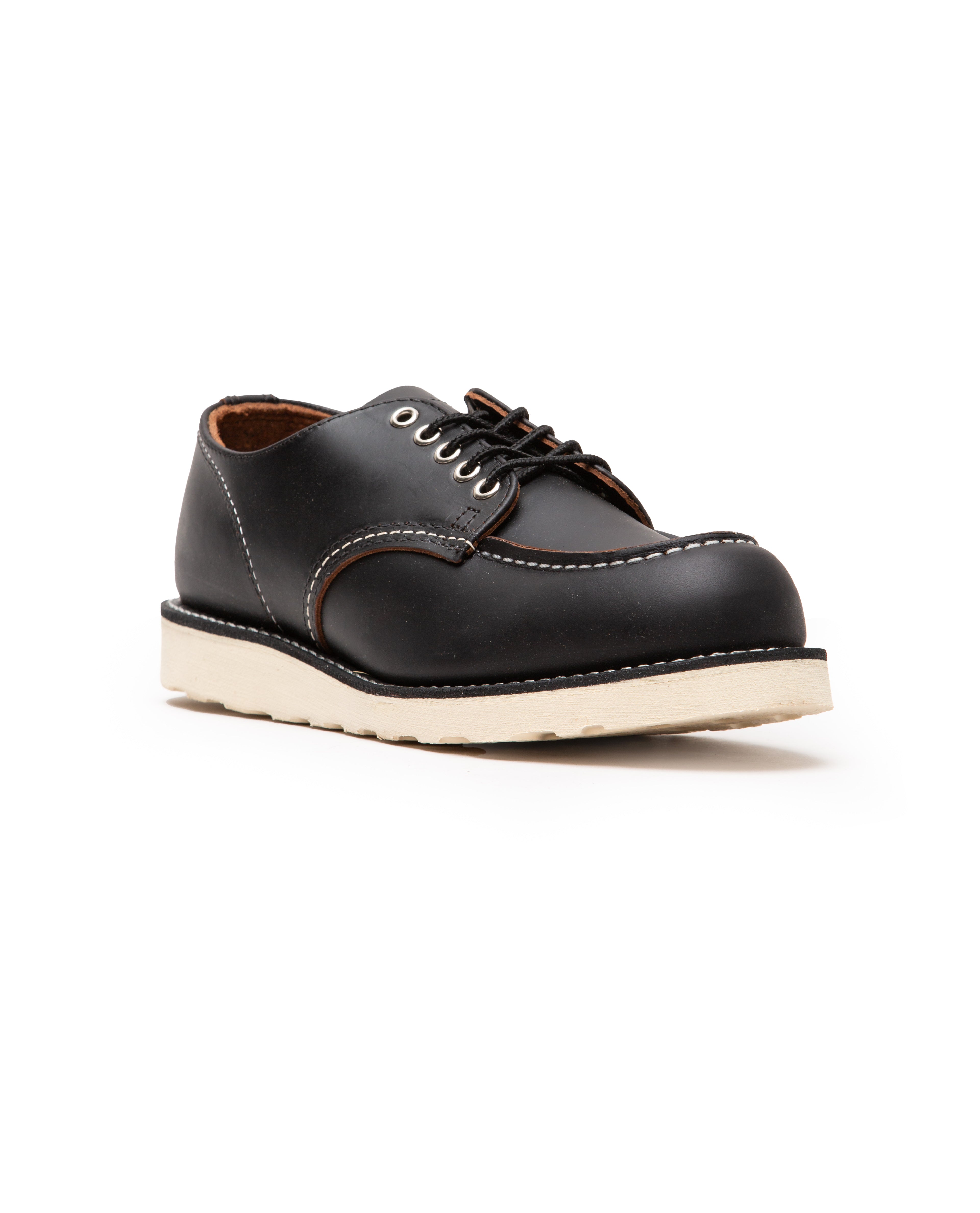 Shop Moc Oxford in black by Red Wing. The Shop Moc Oxford pays tribute to the timeless Classic Moc line, offering a sleek and durable option for all-season wear. Sporting the same design as the Classic Moc, including Moc toe silhouette, Traction Tred outsoles, and Goodyear welt construction.
