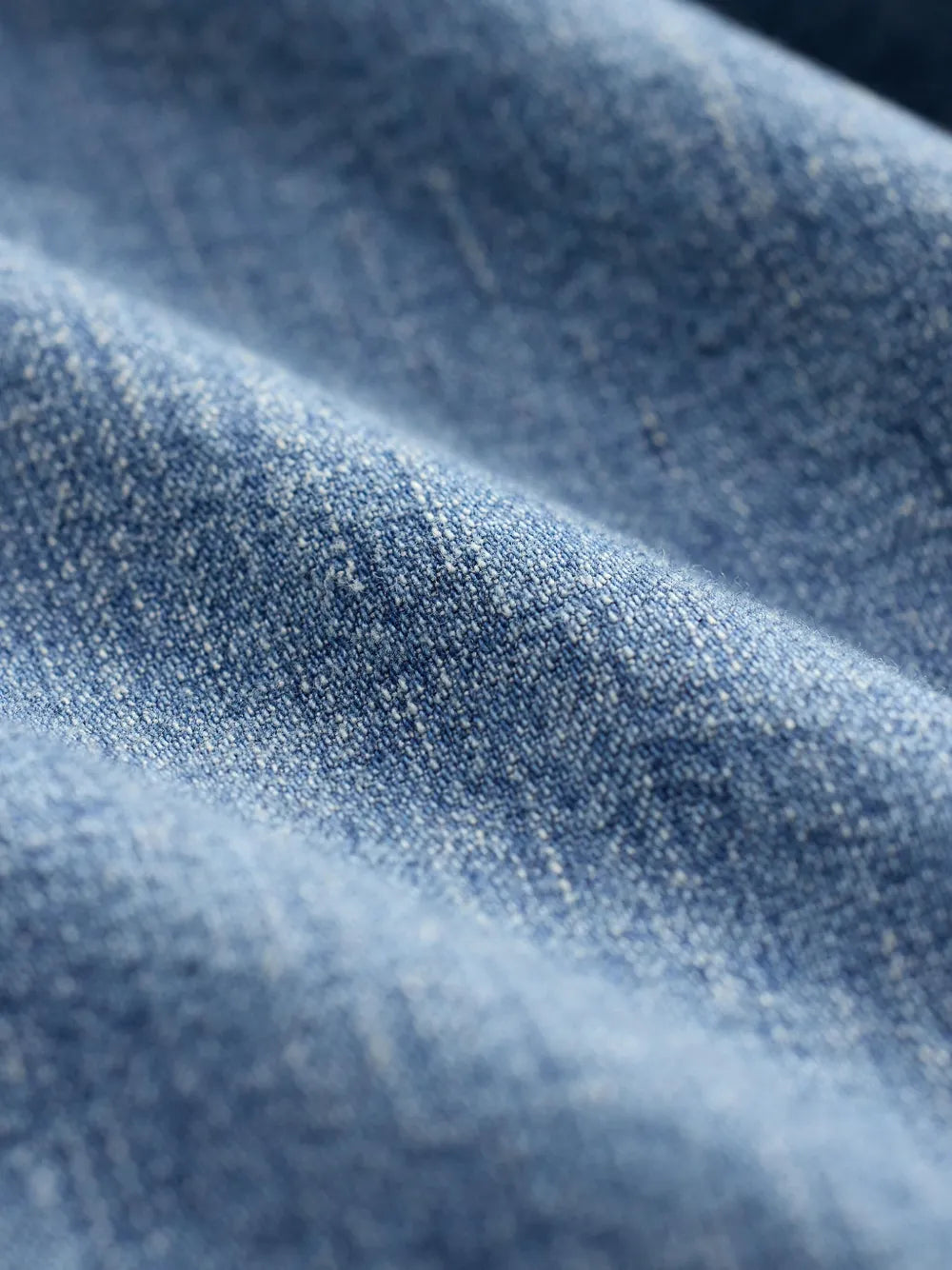 RRL's Sawtooth western jacket in light indigo showcases bold bull embroidery and studded details. Crafted from cotton denim with button fastening, chest pockets, and a point collar, it captures authentic Western heritage.
