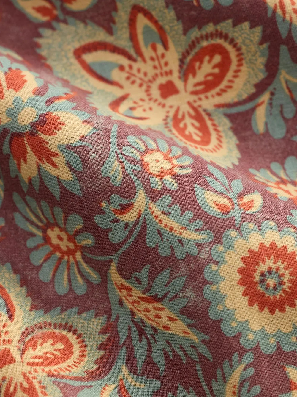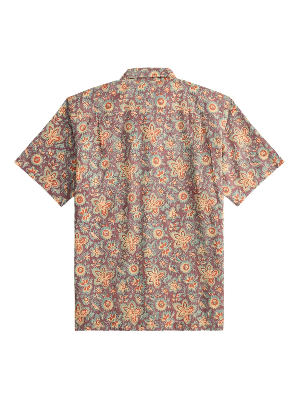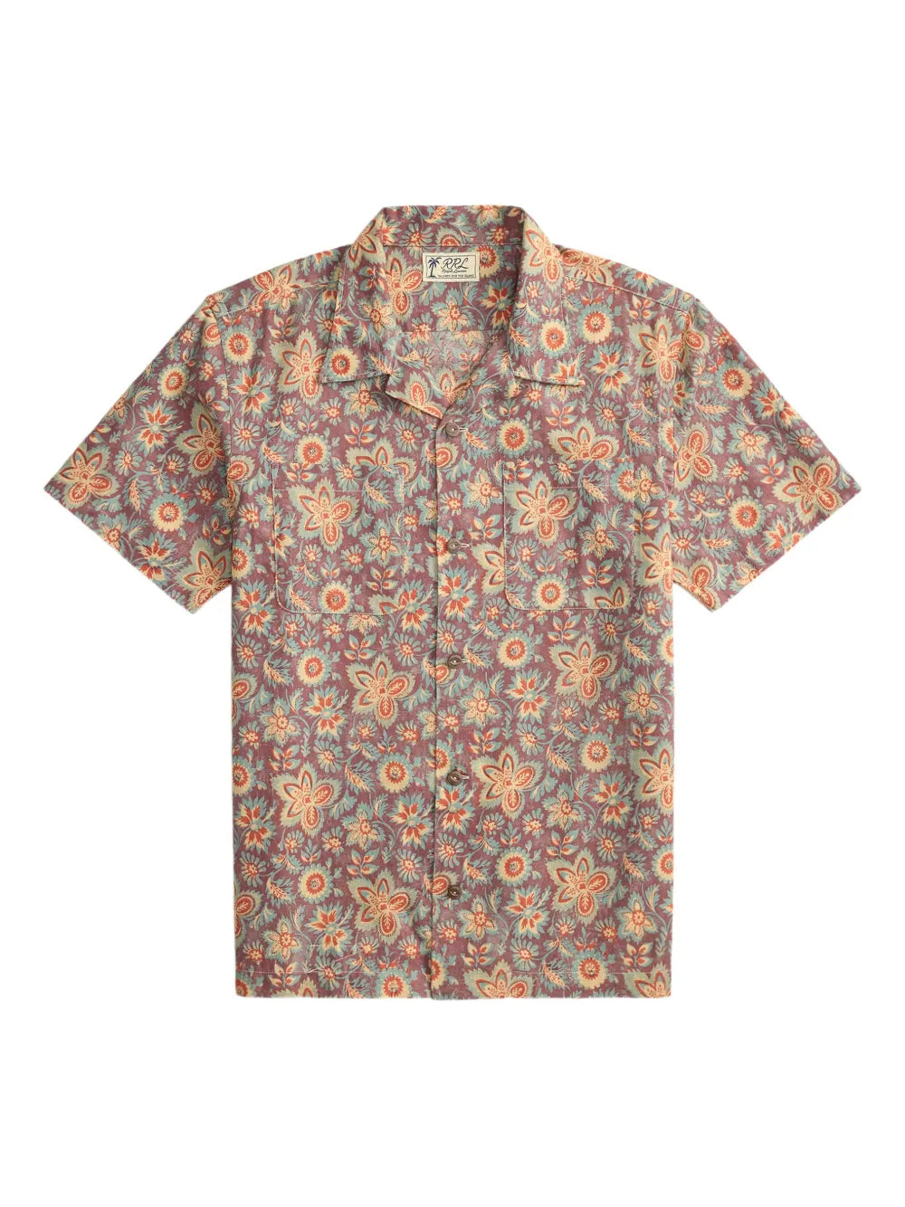 SS 2 Pocket Camp Shirt in multi. All over floral print with a camp collar, buttoned placket, short sleeves, two chest patch pockets, and straight hem.