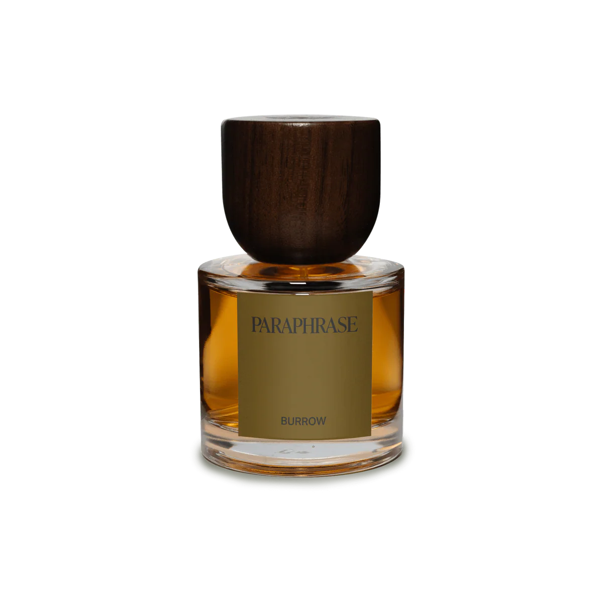 Burrow Perfume evokes the primal comfort of a winter fire. Caraway and turmeric open with warm spice, while cedar and vetiver ground the composition in earthy woods. Date and tonka bean add sweetness and depth. A grounding fragrance that wraps you in smoky warmth and timeless comfort.