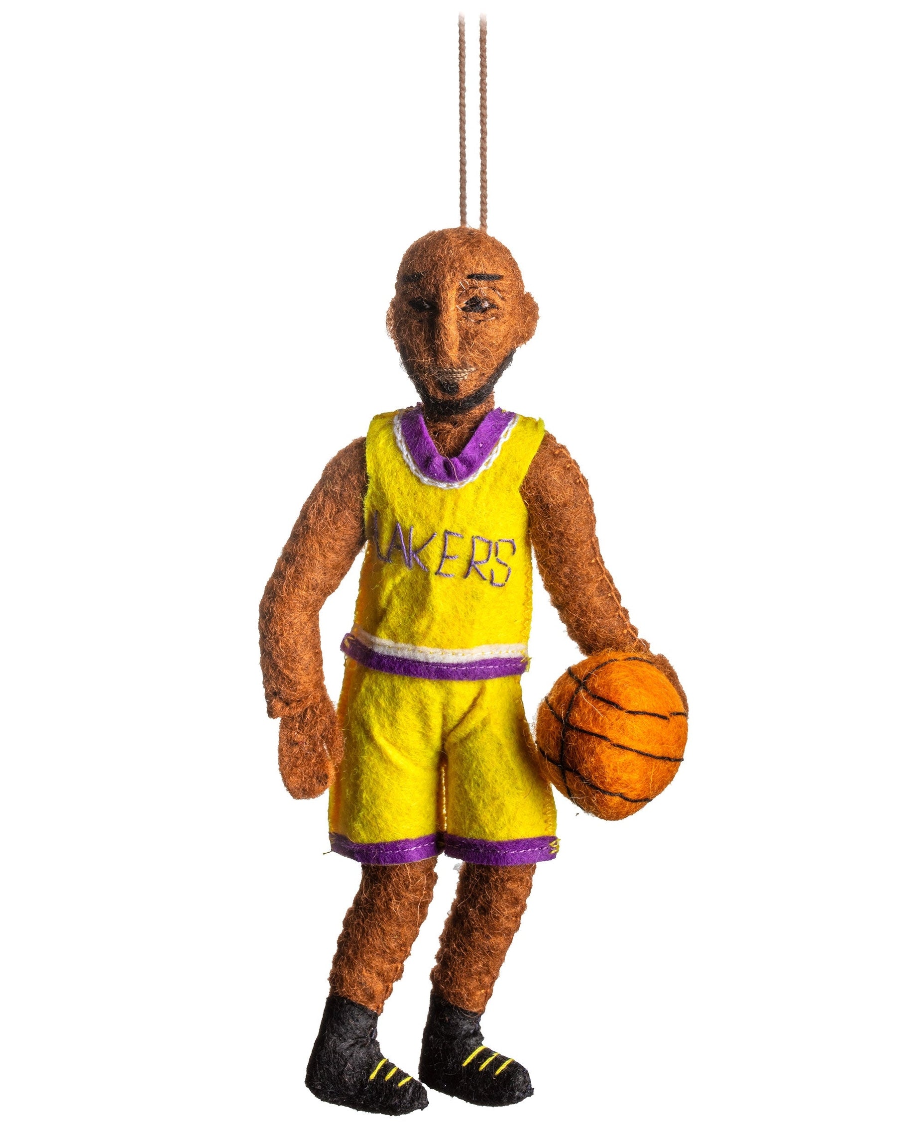 Hand-crafted felt ornament featuring Kobe Bryant, made from natural fibers by artisans in Kyrgyzstan. Hand-stitched details and eco-friendly materials. Approximately 4-5 inches.