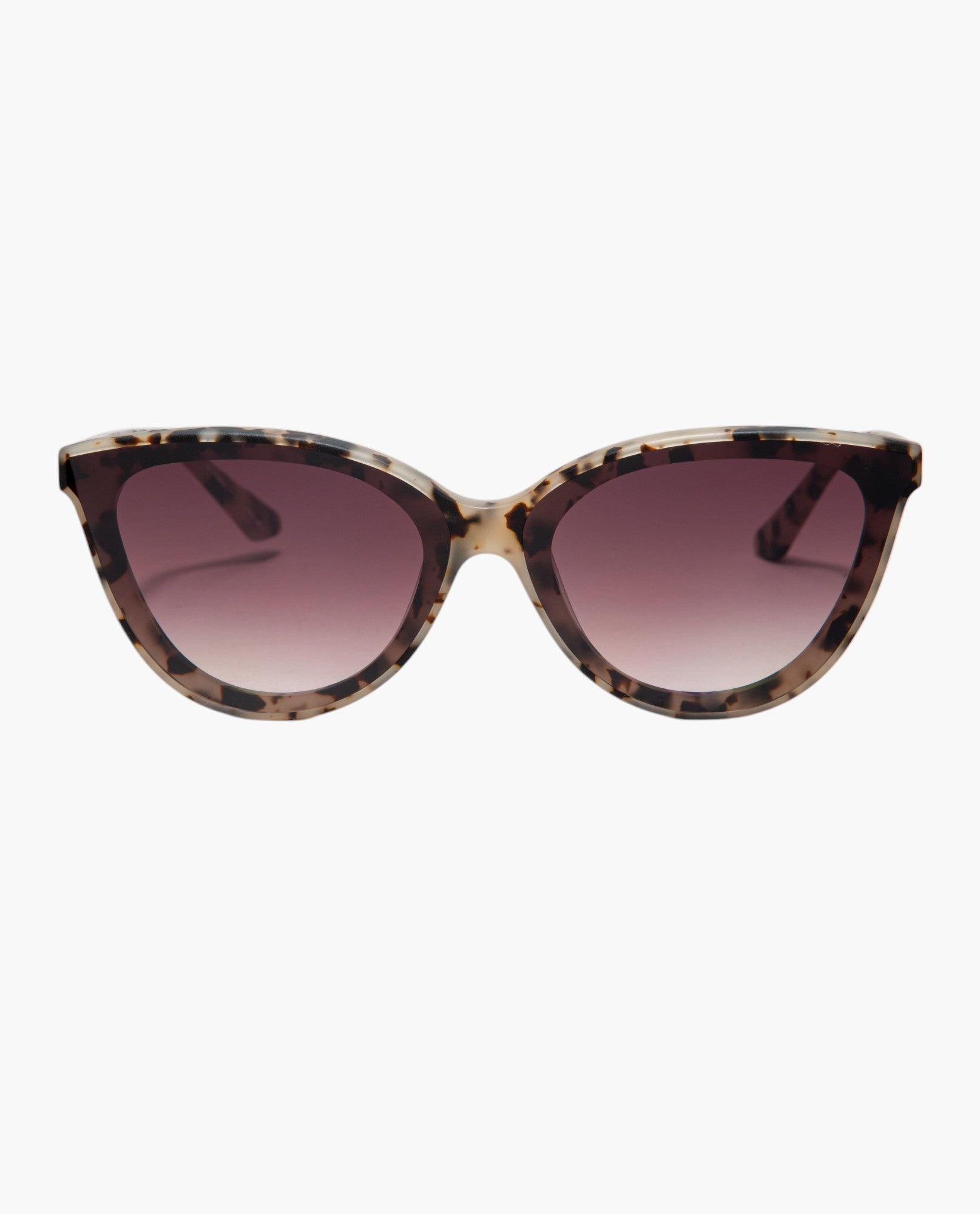 The Monroe Nylon Sunglasses in Matte Oyster by Krewe showcase a stylish 50s cat-eye silhouette with ultra-flat nylon lenses and metal arms. Handcrafted from acetate with a matte finish, they feature adjustable temple wires for a customized fit and durable riveted temples. Each pair is unique, highlighting slight variations in pattern and color from the handmade process.