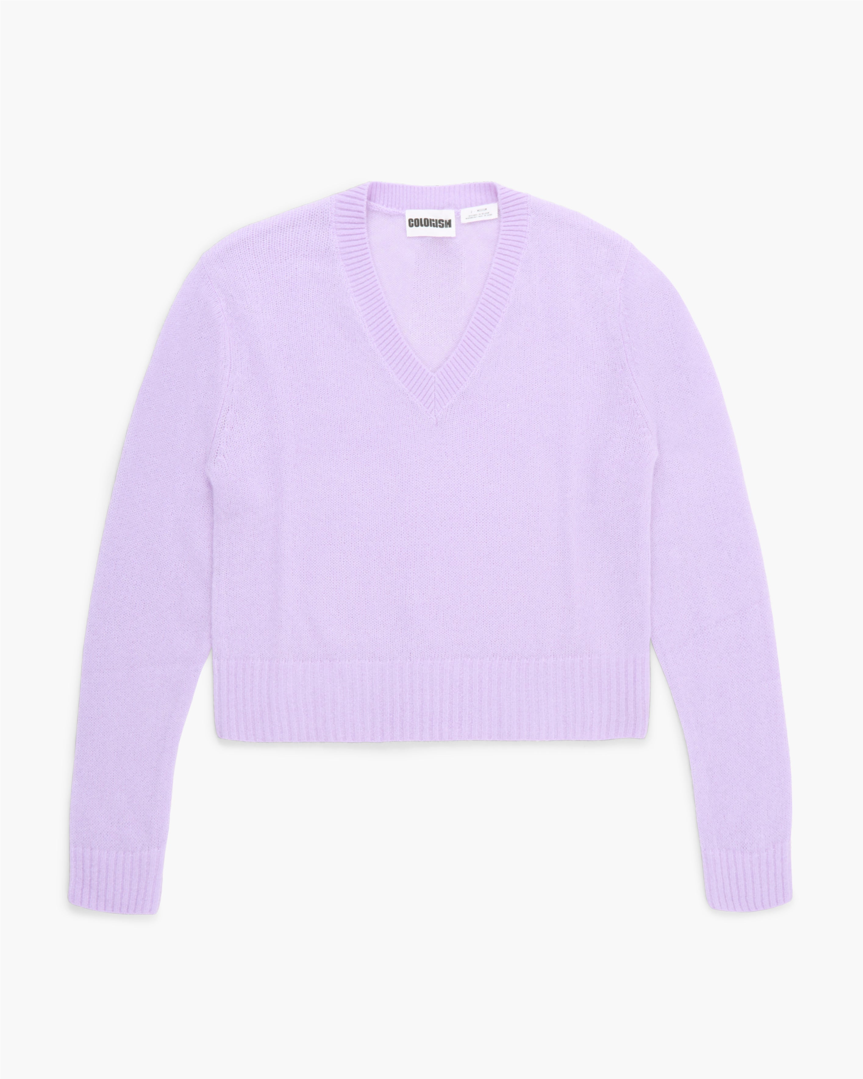Amara Snoop Slim V in violet by Colorush. Soft cashmere and silk blend that drapes beautifully. Wear it alone or layer it.