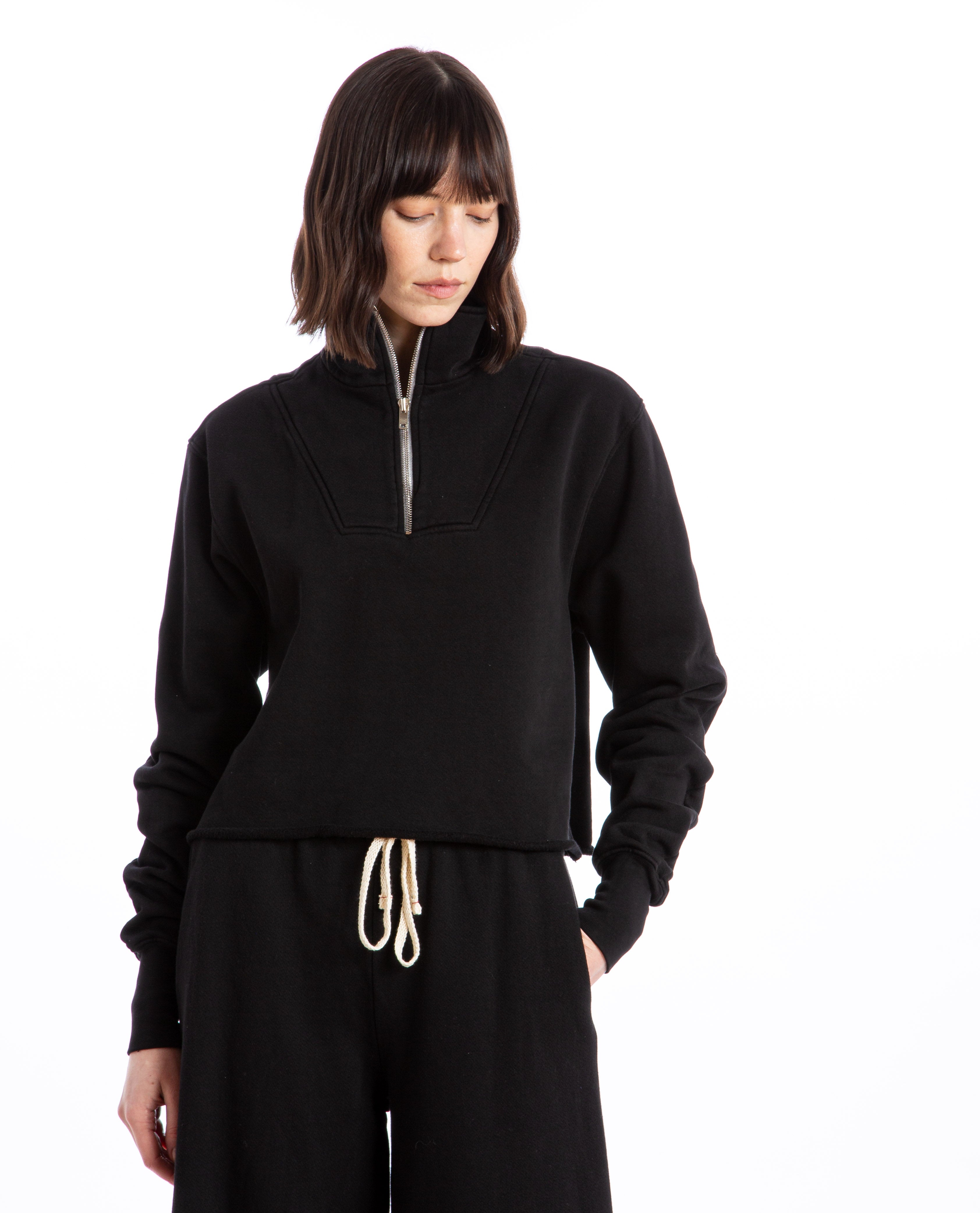 Haley Crop Half-Zip Pullover in jet black by Les Tien.