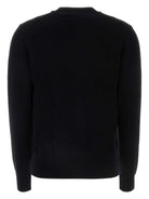 The Red Heart Cardigan by Comme des Garçons PLAY features a black fine wool knit with ribbed edges, an appliqué heart logo, round neckline, front buttons, long sleeves, and a straight hem.
