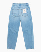 High-rise barrel jeans with a slouchy, tapered silhouette. Crafted from stretch fabric made with recycled poly, these jeans feature a button closure and zip fly with a clean hem finish.
