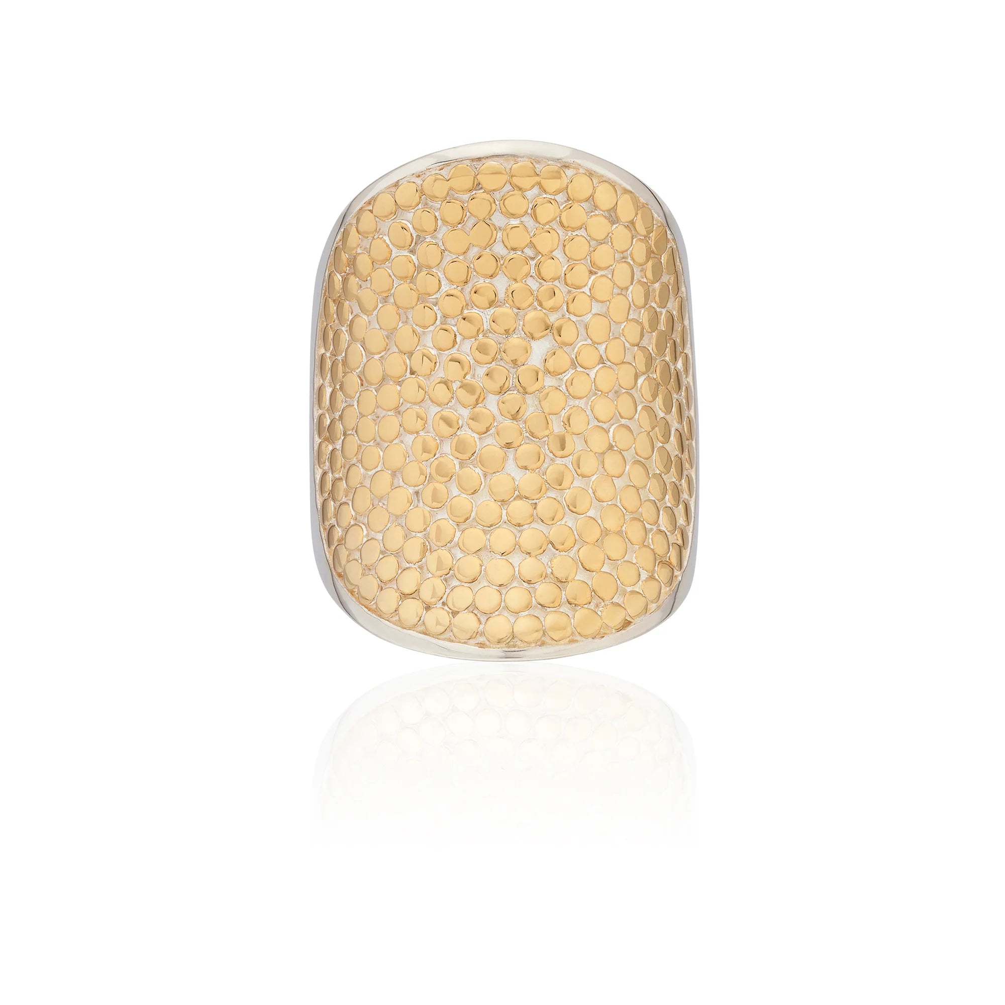 Sleek handmade ring in 18k gold-plated sterling silver with signature dotted detailing. 6mm width at its narrowest point. Crafted in Bali with a streamlined design inspired by our bestselling style.