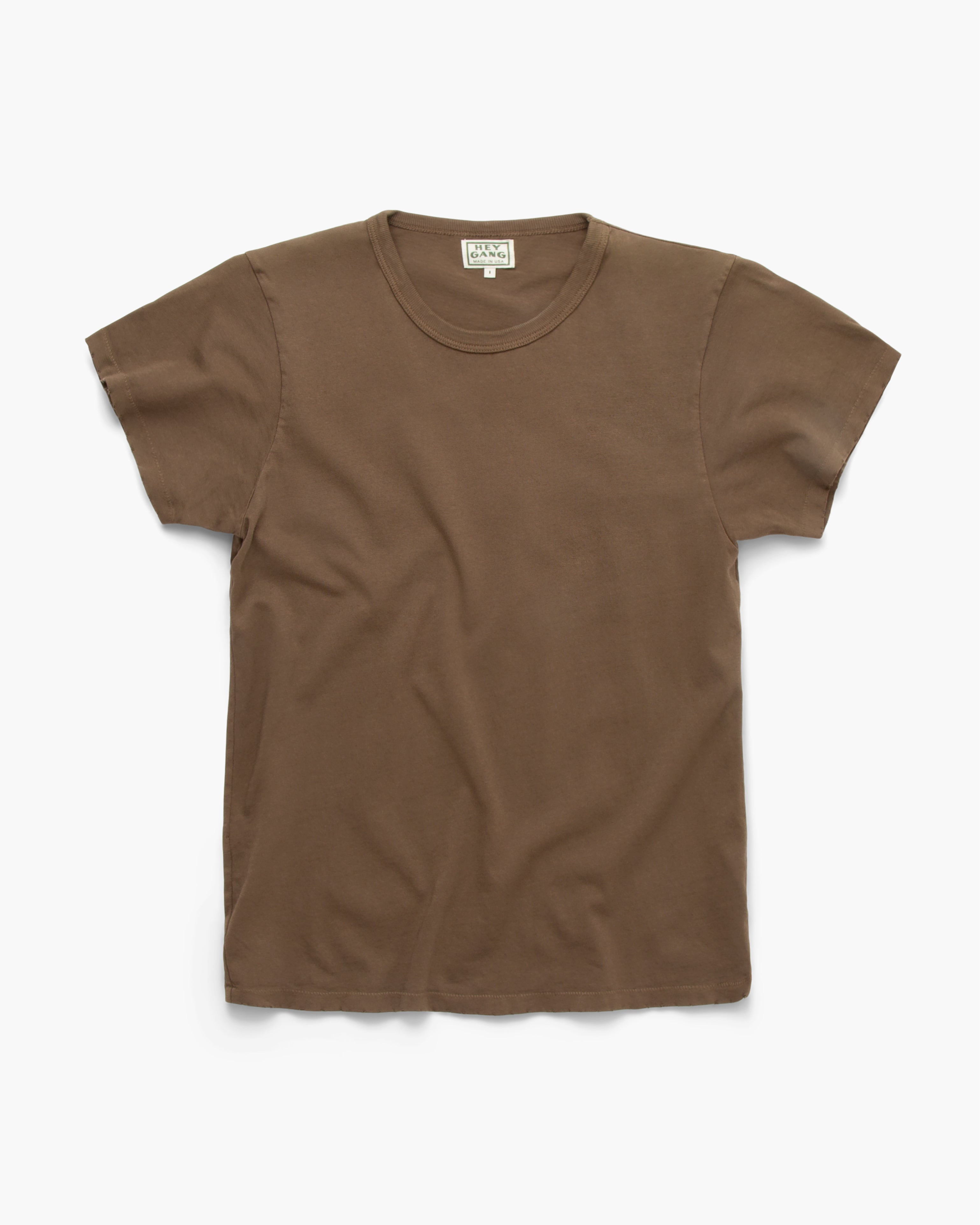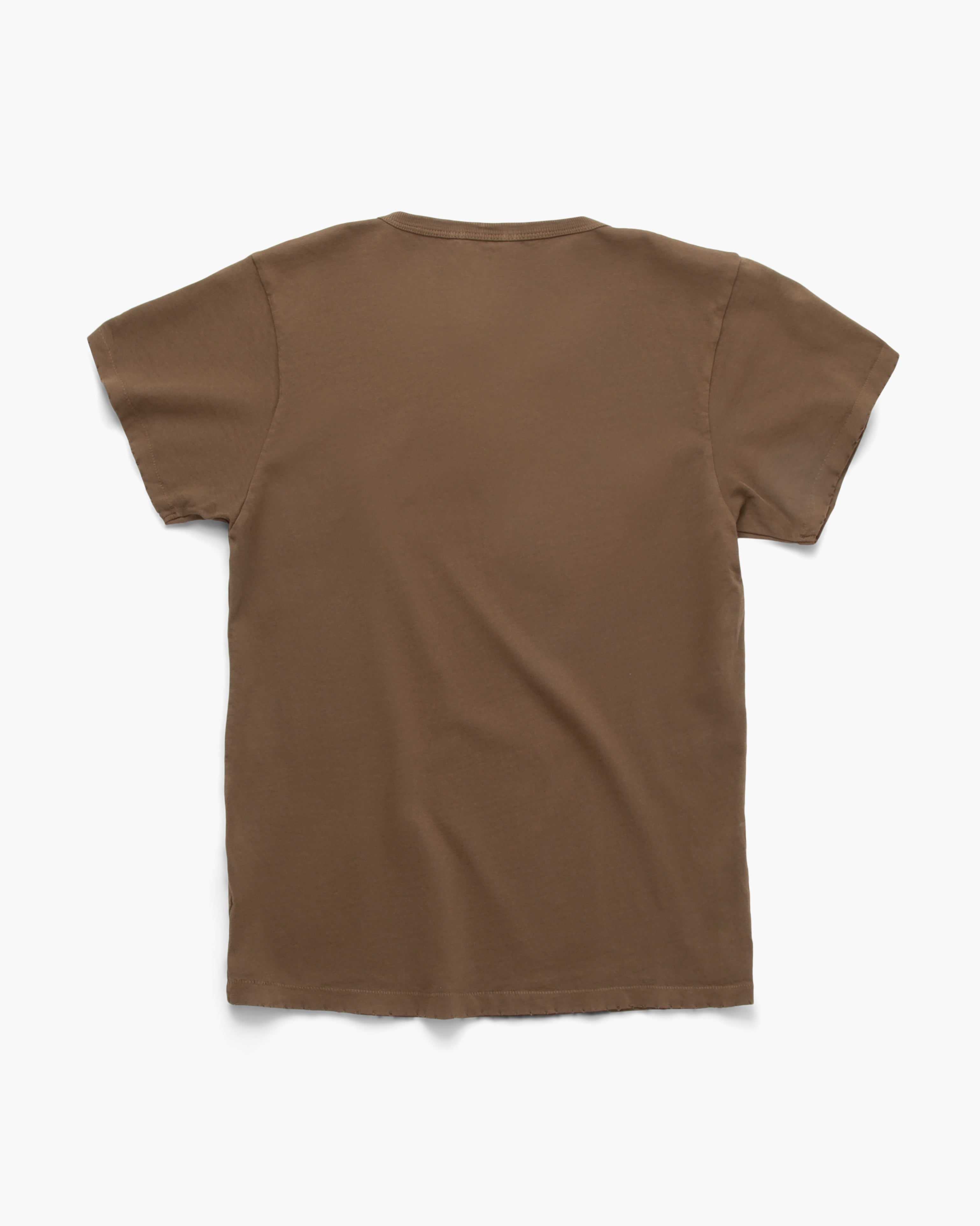 Relaxed crew neck tee in mud-colored 100% cotton with a medium weight fabric and enzyme wash. Cut with a slightly boxy silhouette that captures the ease of a well-loved vintage piece.