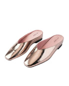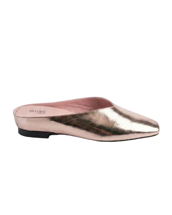Bella Slide in pewter by Gini & Albert features memory foam cushioning throughout the footbed, arch, and heel for comfort. Crafted from small batch European leather with a leather lining and finished with a recycled rubber sole.